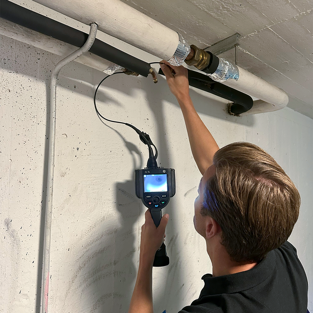 HWQ filmar rören på nytt för att dokumentera resultatet och tryck- sätter därefter vattenrören igen och kontroller att systemet och alla kopplingar håller tätt.